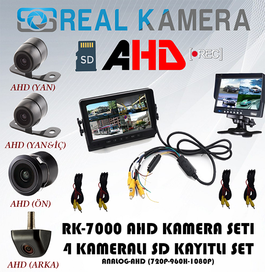 AHD 4 Kameralı Araç Kamera Sistemi SD KART KAYITLI